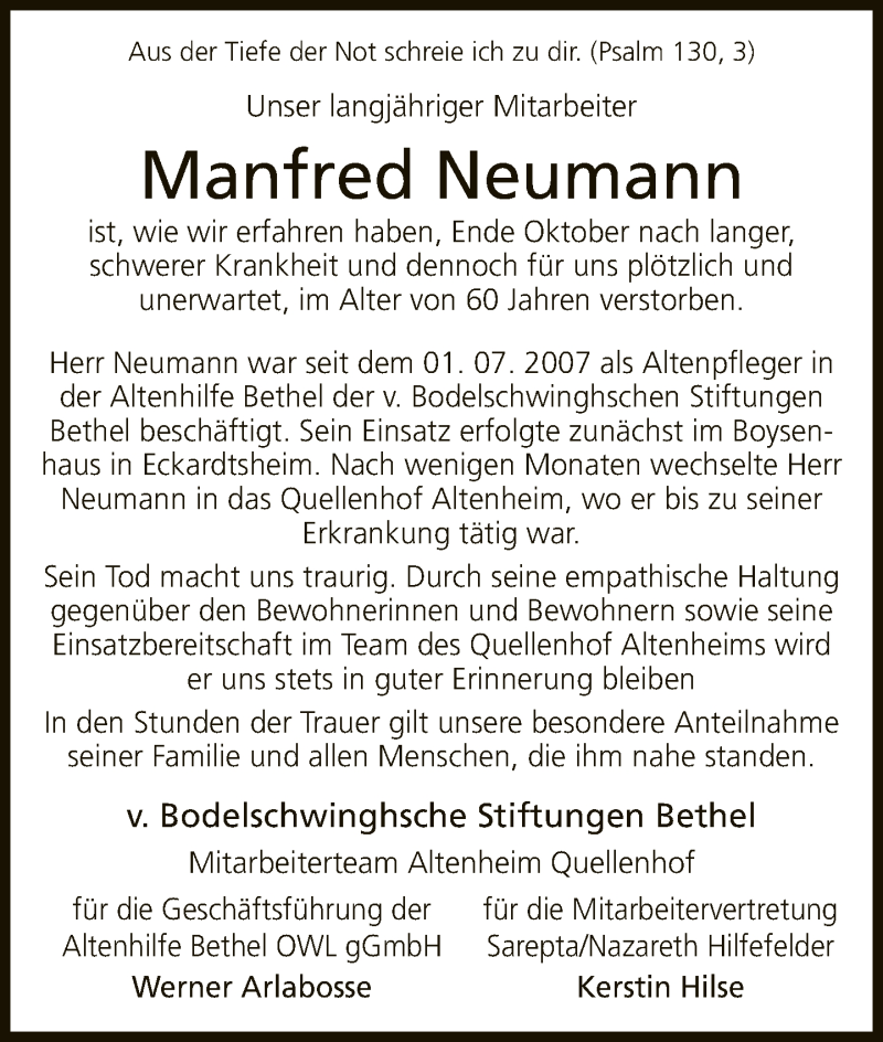 Hier finden Sie alle Traueranzeigen aus der Zeitung, die bisher für Manfred Neumann erschienen sind. Weitere Traueranzeigen, die in der Zeitung erscheinen, werden hier ebenfalls aufgelistet