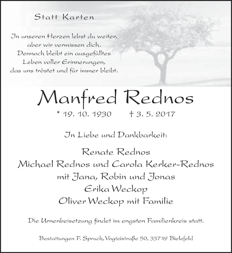 Hier finden Sie alle Traueranzeigen aus der Zeitung, die bisher für Manfred Rednos erschienen sind. Weitere Traueranzeigen, die in der Zeitung erscheinen, werden hier ebenfalls aufgelistet