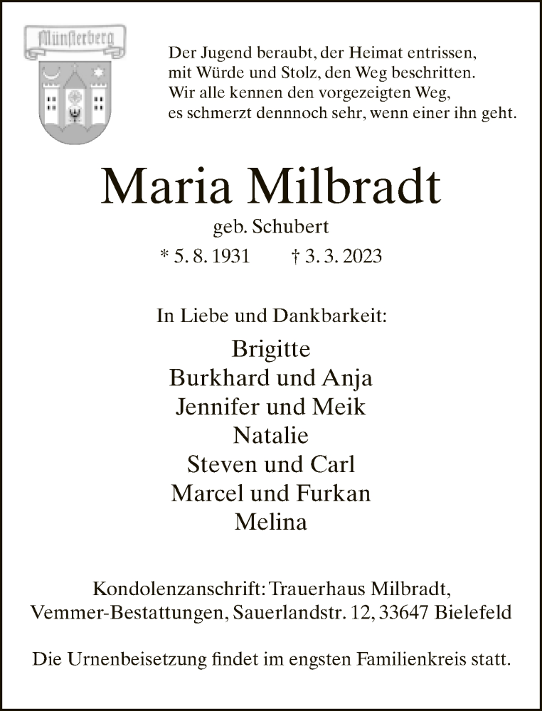 Hier finden Sie alle Traueranzeigen aus der Zeitung, die bisher für Maria Milbradt erschienen sind. Weitere Traueranzeigen, die in der Zeitung erscheinen, werden hier ebenfalls aufgelistet