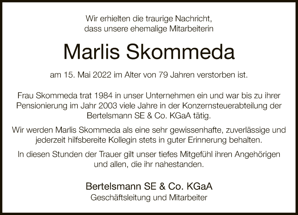 Hier finden Sie alle Traueranzeigen aus der Zeitung, die bisher für Marlis Skommeda erschienen sind. Weitere Traueranzeigen, die in der Zeitung erscheinen, werden hier ebenfalls aufgelistet