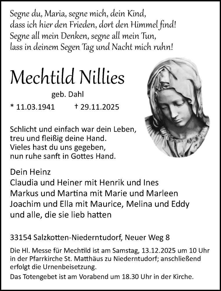 Hier finden Sie alle Traueranzeigen aus der Zeitung, die bisher für Mechtild Nillies erschienen sind. Weitere Traueranzeigen, die in der Zeitung erscheinen, werden hier ebenfalls aufgelistet