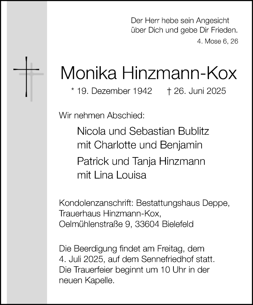 Hier finden Sie alle Traueranzeigen aus der Zeitung, die bisher für Monika Hinzmann-Kox erschienen sind. Weitere Traueranzeigen, die in der Zeitung erscheinen, werden hier ebenfalls aufgelistet