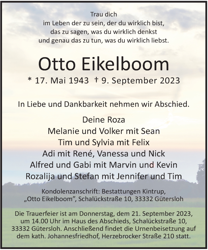 Hier finden Sie alle Traueranzeigen aus der Zeitung, die bisher für Otto Eikelboom erschienen sind. Weitere Traueranzeigen, die in der Zeitung erscheinen, werden hier ebenfalls aufgelistet