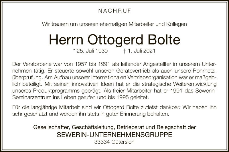 Hier finden Sie alle Traueranzeigen aus der Zeitung, die bisher für Ottogerd Bolte erschienen sind. Weitere Traueranzeigen, die in der Zeitung erscheinen, werden hier ebenfalls aufgelistet