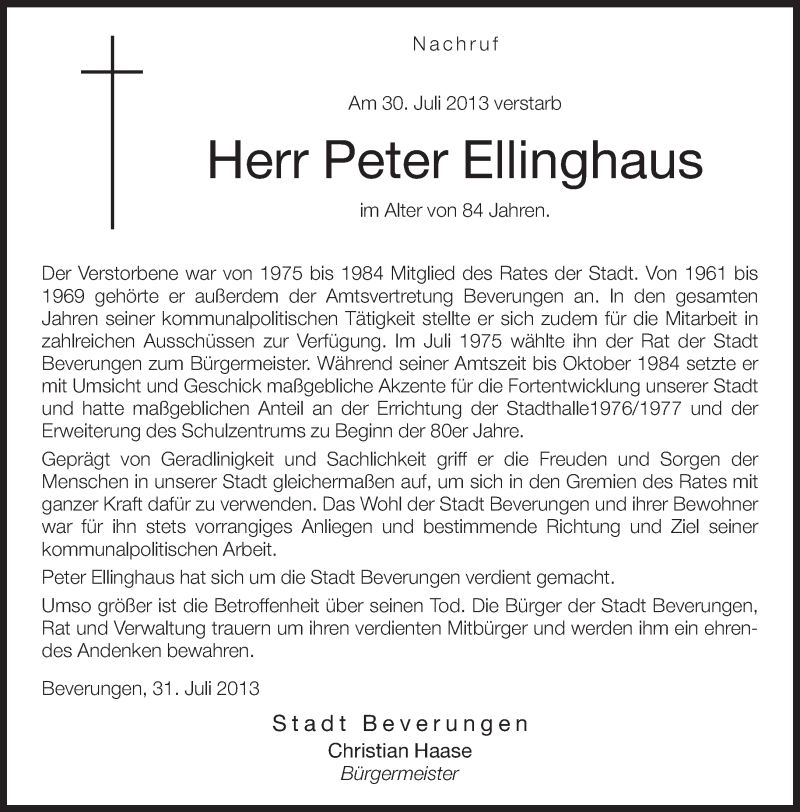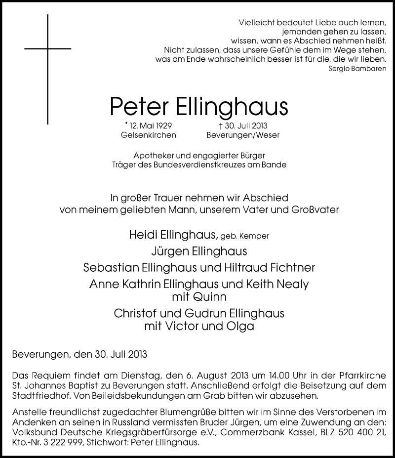 Hier finden Sie alle Traueranzeigen aus der Zeitung, die bisher für Peter Ellinghaus erschienen sind. Weitere Traueranzeigen, die in der Zeitung erscheinen, werden hier ebenfalls aufgelistet