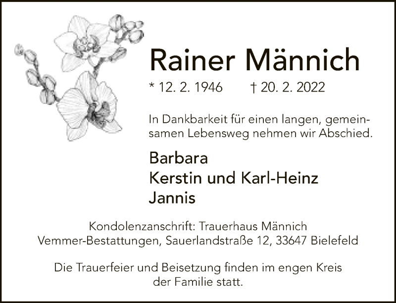 Hier finden Sie alle Traueranzeigen aus der Zeitung, die bisher für Rainer Männich erschienen sind. Weitere Traueranzeigen, die in der Zeitung erscheinen, werden hier ebenfalls aufgelistet
