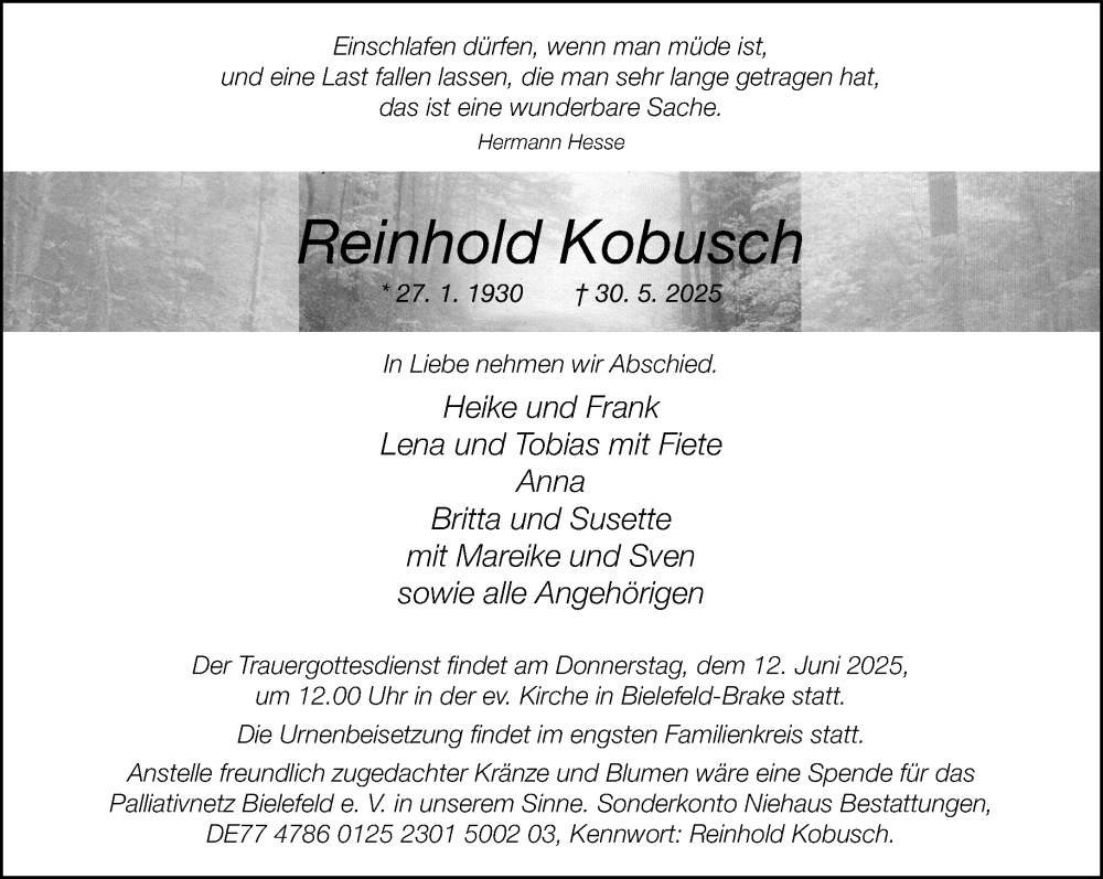 Hier finden Sie alle Traueranzeigen aus der Zeitung, die bisher für Reinhold Kobusch erschienen sind. Weitere Traueranzeigen, die in der Zeitung erscheinen, werden hier ebenfalls aufgelistet