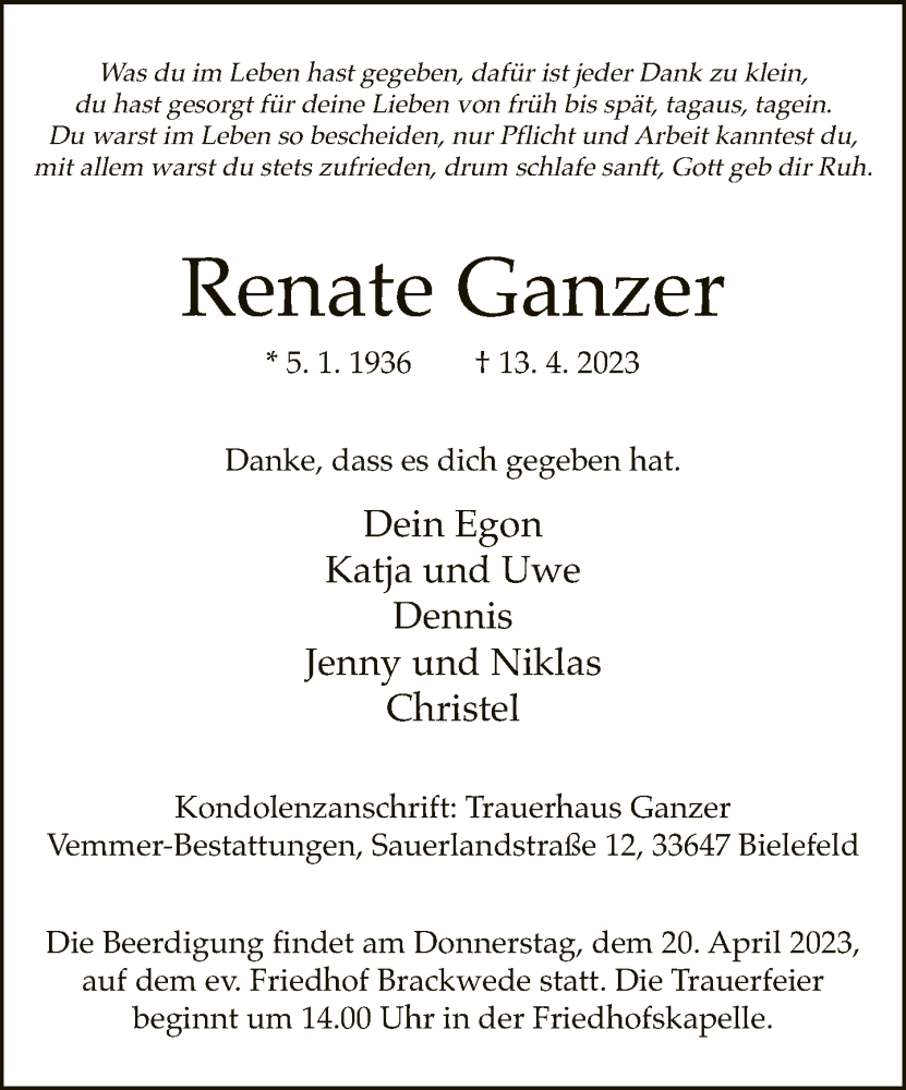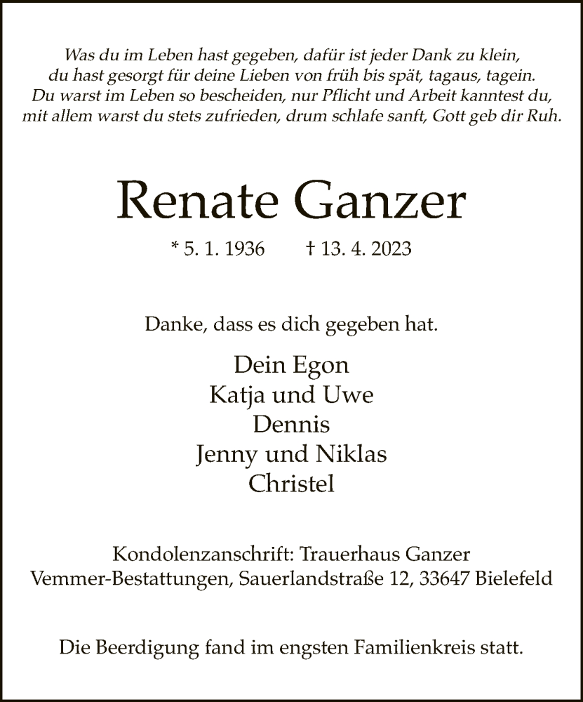 Hier finden Sie alle Traueranzeigen aus der Zeitung, die bisher für Renate Ganzer erschienen sind. Weitere Traueranzeigen, die in der Zeitung erscheinen, werden hier ebenfalls aufgelistet