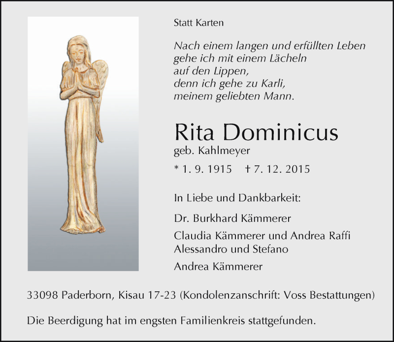 Hier finden Sie alle Traueranzeigen aus der Zeitung, die bisher für Rita Dominicus erschienen sind. Weitere Traueranzeigen, die in der Zeitung erscheinen, werden hier ebenfalls aufgelistet
