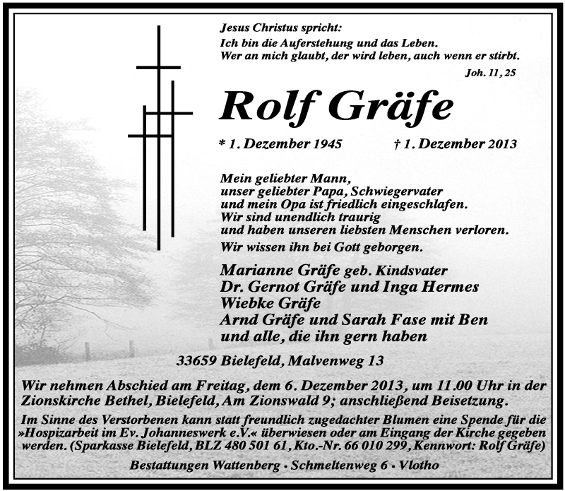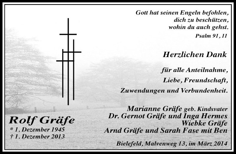 Hier finden Sie alle Traueranzeigen aus der Zeitung, die bisher für Rolf Gräfe erschienen sind. Weitere Traueranzeigen, die in der Zeitung erscheinen, werden hier ebenfalls aufgelistet