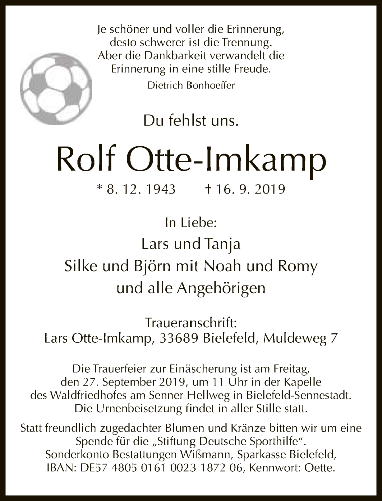 Hier finden Sie alle Traueranzeigen aus der Zeitung, die bisher für Rolf Otte-Irrkamp erschienen sind. Weitere Traueranzeigen, die in der Zeitung erscheinen, werden hier ebenfalls aufgelistet
