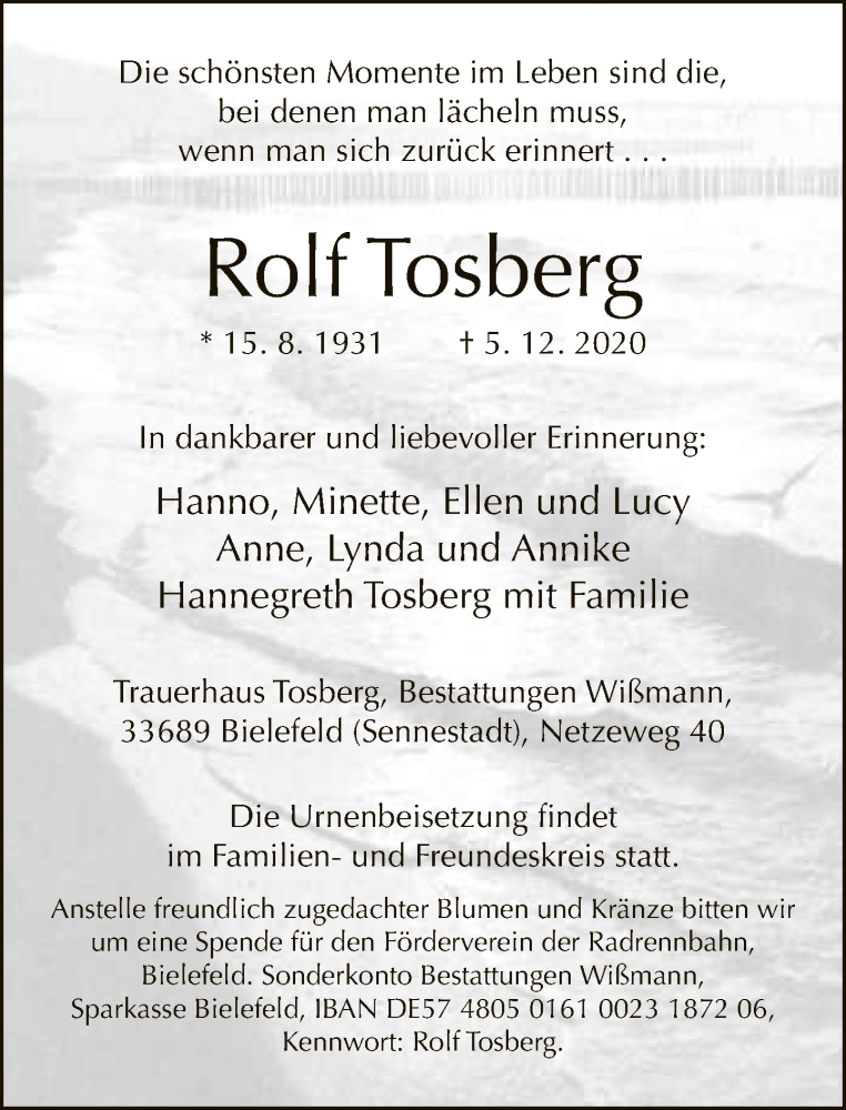 Hier finden Sie alle Traueranzeigen aus der Zeitung, die bisher für Rolf Tosberg erschienen sind. Weitere Traueranzeigen, die in der Zeitung erscheinen, werden hier ebenfalls aufgelistet