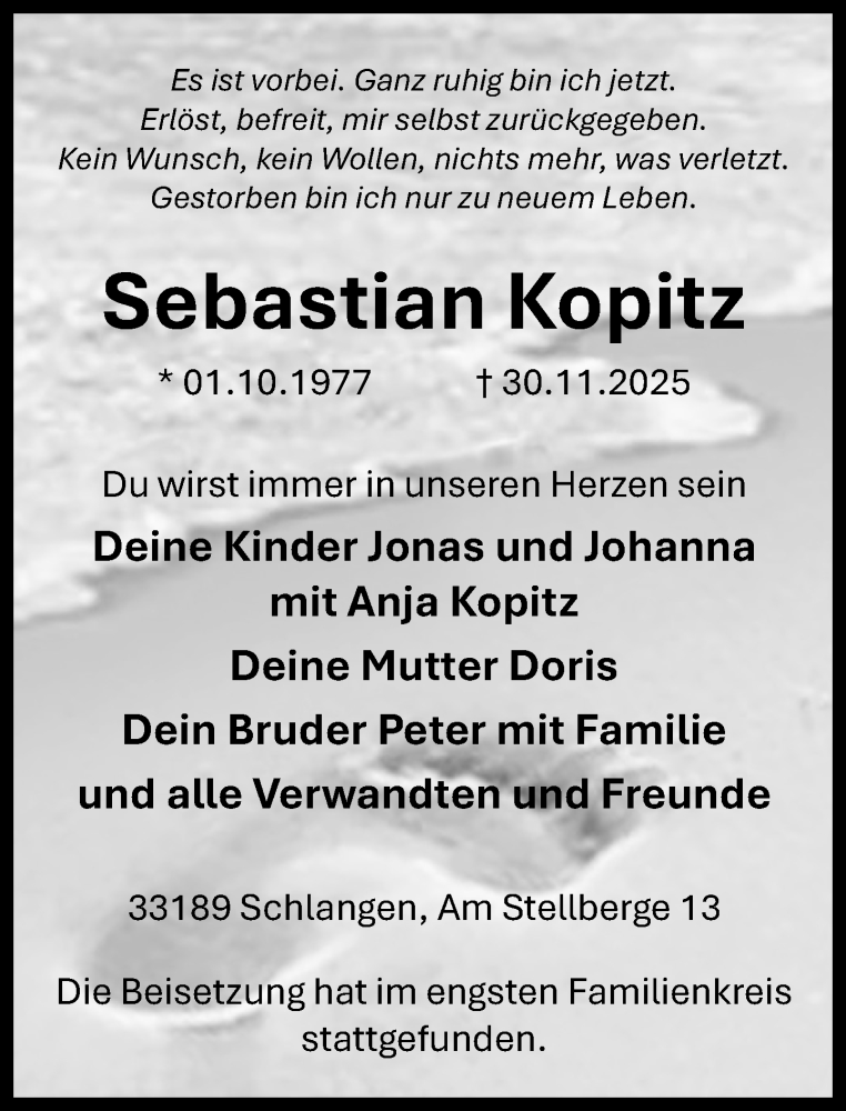 Hier finden Sie alle Traueranzeigen aus der Zeitung, die bisher für Sebastian Kopitz erschienen sind. Weitere Traueranzeigen, die in der Zeitung erscheinen, werden hier ebenfalls aufgelistet