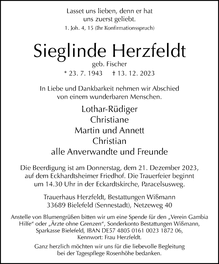Hier finden Sie alle Traueranzeigen aus der Zeitung, die bisher für Sieglinde Herzfeldt erschienen sind. Weitere Traueranzeigen, die in der Zeitung erscheinen, werden hier ebenfalls aufgelistet