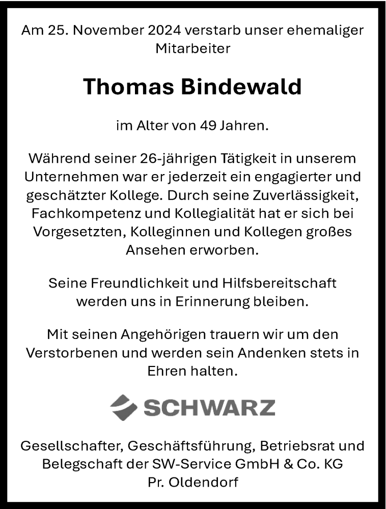 Hier finden Sie alle Traueranzeigen aus der Zeitung, die bisher für Thomas Bindewald erschienen sind. Weitere Traueranzeigen, die in der Zeitung erscheinen, werden hier ebenfalls aufgelistet