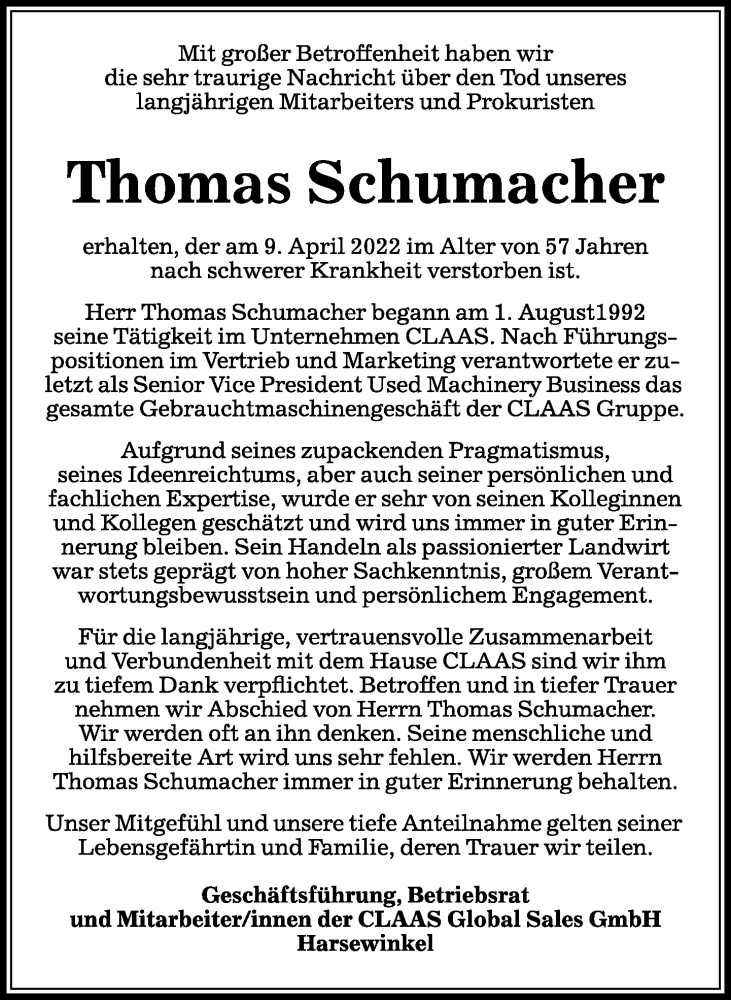 Hier finden Sie alle Traueranzeigen aus der Zeitung, die bisher für Thomas Schumacher erschienen sind. Weitere Traueranzeigen, die in der Zeitung erscheinen, werden hier ebenfalls aufgelistet