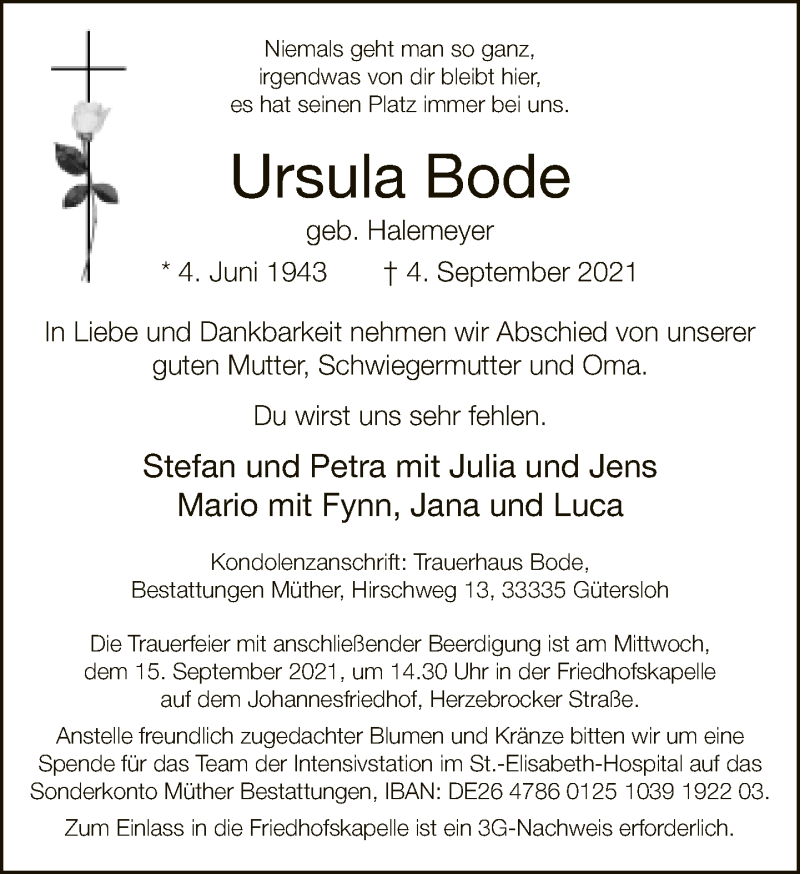 Hier finden Sie alle Traueranzeigen aus der Zeitung, die bisher für Ursula Bode erschienen sind. Weitere Traueranzeigen, die in der Zeitung erscheinen, werden hier ebenfalls aufgelistet