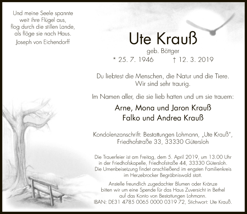 Hier finden Sie alle Traueranzeigen aus der Zeitung, die bisher für Ute Krauß erschienen sind. Weitere Traueranzeigen, die in der Zeitung erscheinen, werden hier ebenfalls aufgelistet