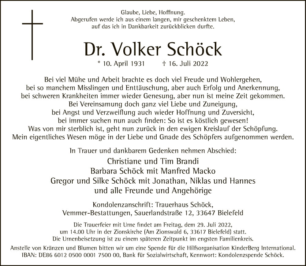 Hier finden Sie alle Traueranzeigen aus der Zeitung, die bisher für Volker Schöck erschienen sind. Weitere Traueranzeigen, die in der Zeitung erscheinen, werden hier ebenfalls aufgelistet