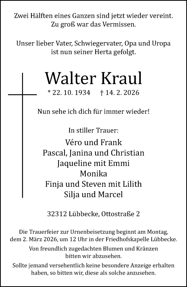 Hier finden Sie alle Traueranzeigen aus der Zeitung, die bisher für Walter Kraul erschienen sind. Weitere Traueranzeigen, die in der Zeitung erscheinen, werden hier ebenfalls aufgelistet