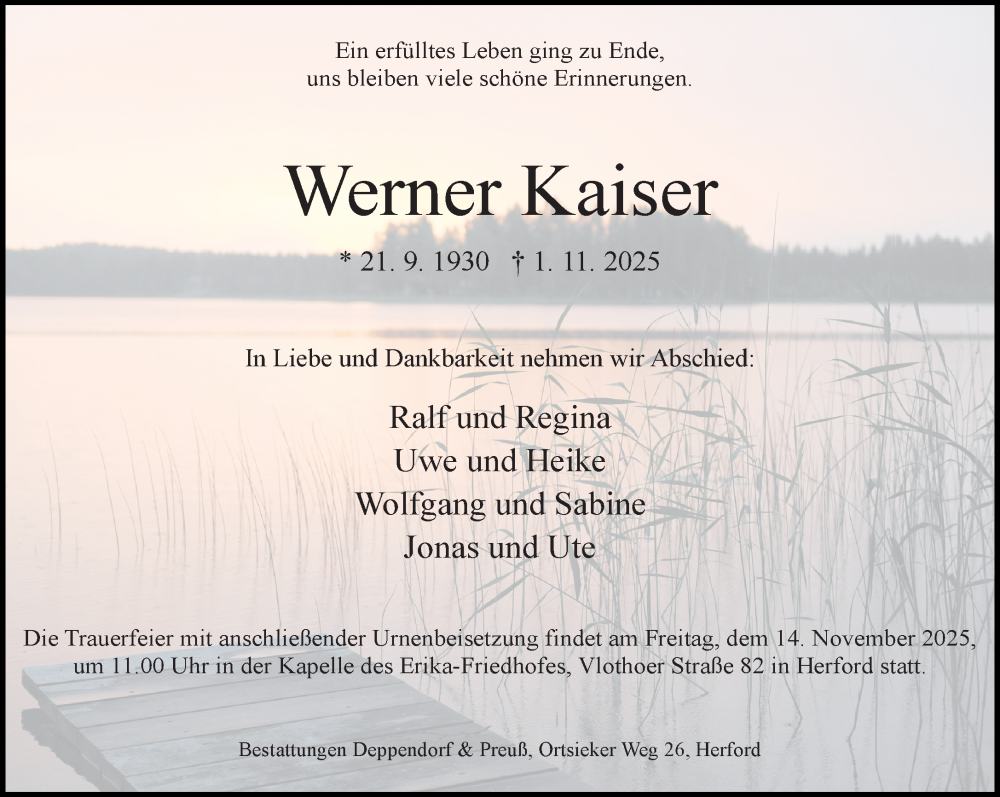 Hier finden Sie alle Traueranzeigen aus der Zeitung, die bisher für Werner Kaiser erschienen sind. Weitere Traueranzeigen, die in der Zeitung erscheinen, werden hier ebenfalls aufgelistet
