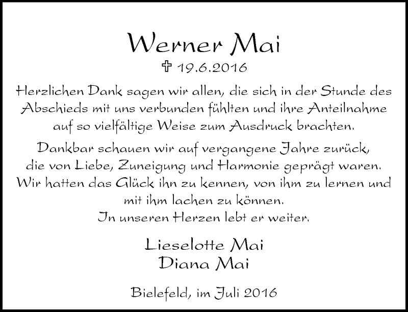 Hier finden Sie alle Traueranzeigen aus der Zeitung, die bisher für Werner Mai erschienen sind. Weitere Traueranzeigen, die in der Zeitung erscheinen, werden hier ebenfalls aufgelistet