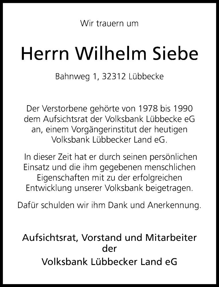 Hier finden Sie alle Traueranzeigen aus der Zeitung, die bisher für Wilhelm Siebe erschienen sind. Weitere Traueranzeigen, die in der Zeitung erscheinen, werden hier ebenfalls aufgelistet