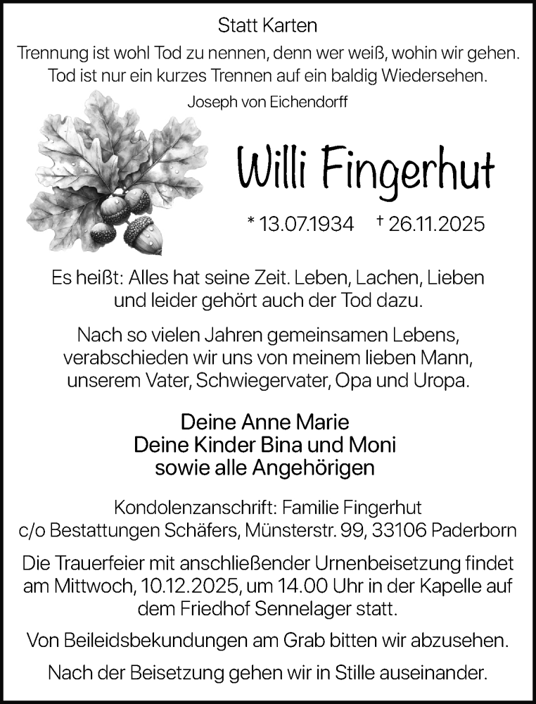 Hier finden Sie alle Traueranzeigen aus der Zeitung, die bisher für Willi Fingerhut erschienen sind. Weitere Traueranzeigen, die in der Zeitung erscheinen, werden hier ebenfalls aufgelistet