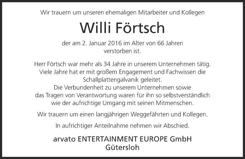Hier finden Sie alle Traueranzeigen aus der Zeitung, die bisher für Willi Förtsch erschienen sind. Weitere Traueranzeigen, die in der Zeitung erscheinen, werden hier ebenfalls aufgelistet
