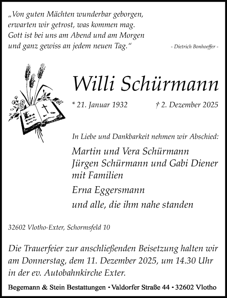 Hier finden Sie alle Traueranzeigen aus der Zeitung, die bisher für Willi Schürmann erschienen sind. Weitere Traueranzeigen, die in der Zeitung erscheinen, werden hier ebenfalls aufgelistet