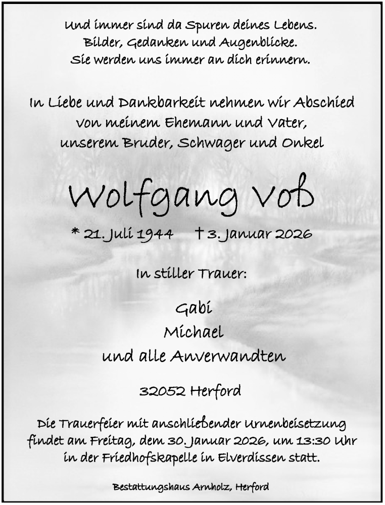 Hier finden Sie alle Traueranzeigen aus der Zeitung, die bisher für Wolfgang Voß erschienen sind. Weitere Traueranzeigen, die in der Zeitung erscheinen, werden hier ebenfalls aufgelistet